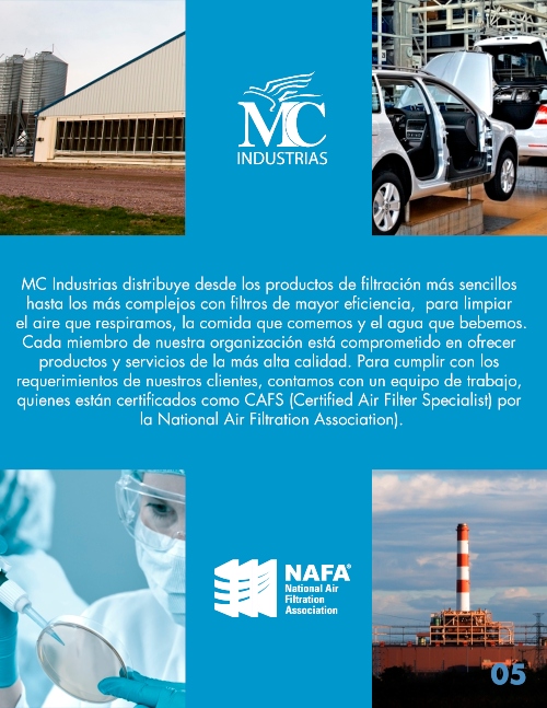 Nuestro equipo de ventas está certificado como CAFS (Certified Air Filter Specialist) por la NAFA, esto nos permite estar a la vanguardia y siempre ofrecer los mejores productos y soluciones para cumplir y exceder las expectativas de nuestros clientes.